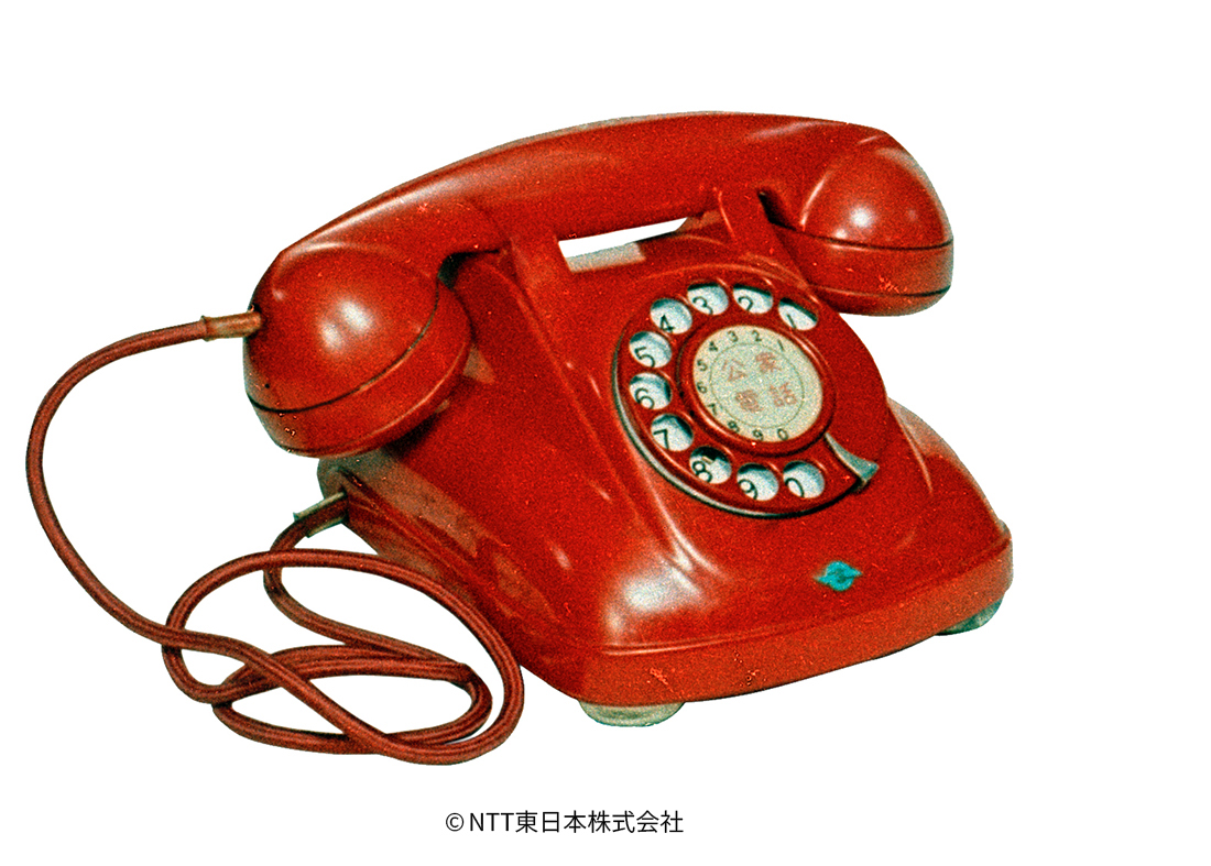 加入者用4号自動式卓上電話機のきょう体、送受話器およびコードなどを赤色にしたもの。