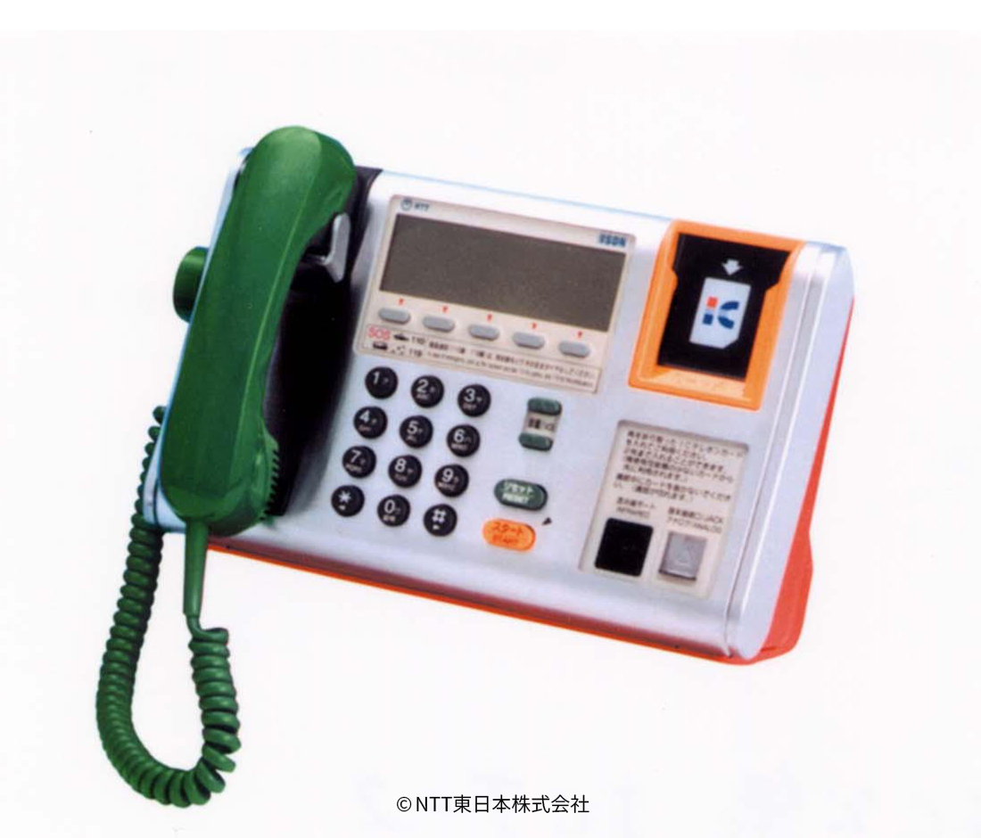 1999(平成11)年3月から、非接触式のICテレホンカードを使って通話する新しい公衆電話機がお目見えした。従来の公衆電話機に比べ、小型化するとともに、抜本的な変造テレホンカード対策を図った。