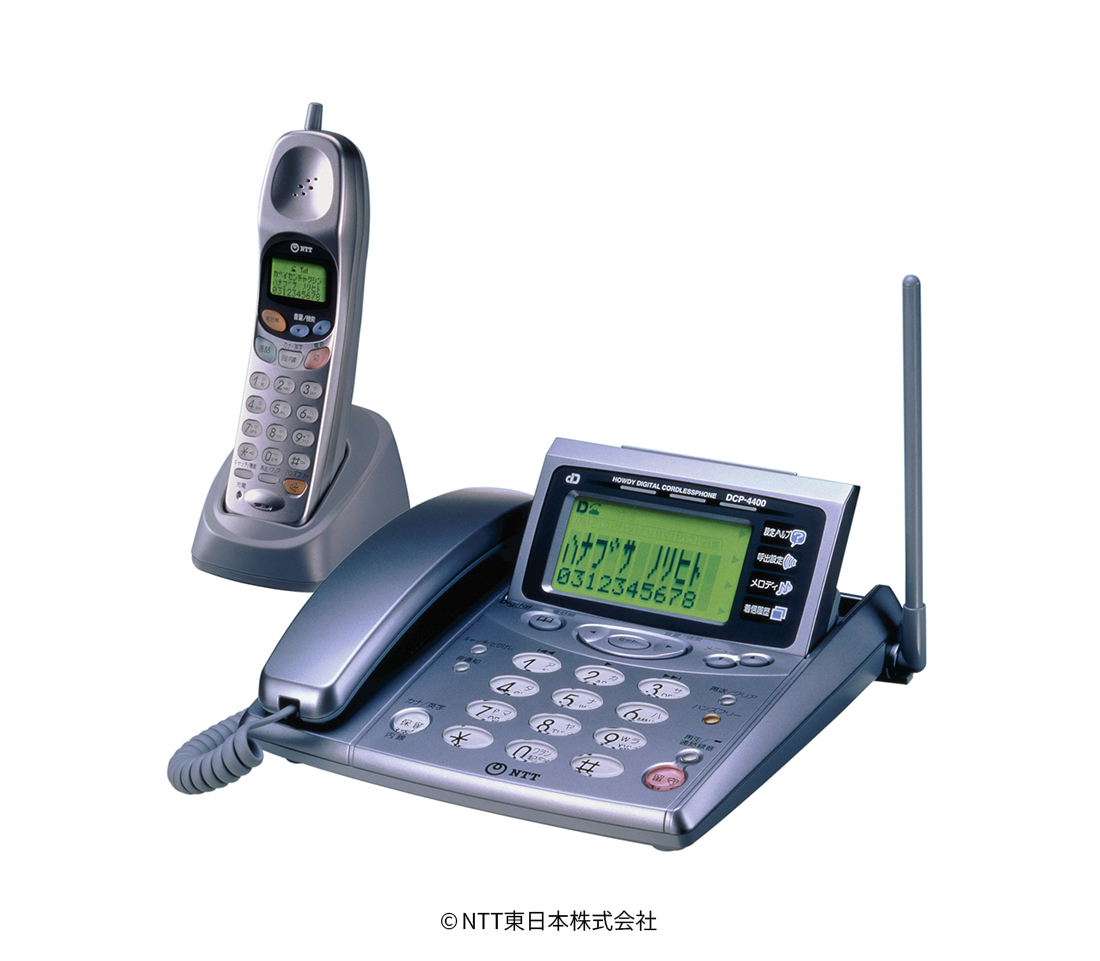 「ハウディ ディジタルコードレスホン DCP-4400」は、「可動式大画面」を搭載し、ナンバー・ディスプレイやキャッチホン・ディスプレイ対応機能をより便利に使うことができます。また、オプションの「ワイヤレスモデムアダプタA」を利用することにより、モデム内蔵パソコンやBSデジタルチューナーをワイヤレスで接続することが可能となり、わずらわしい配線なしで家中どこででもインターネット通信ができる商品。