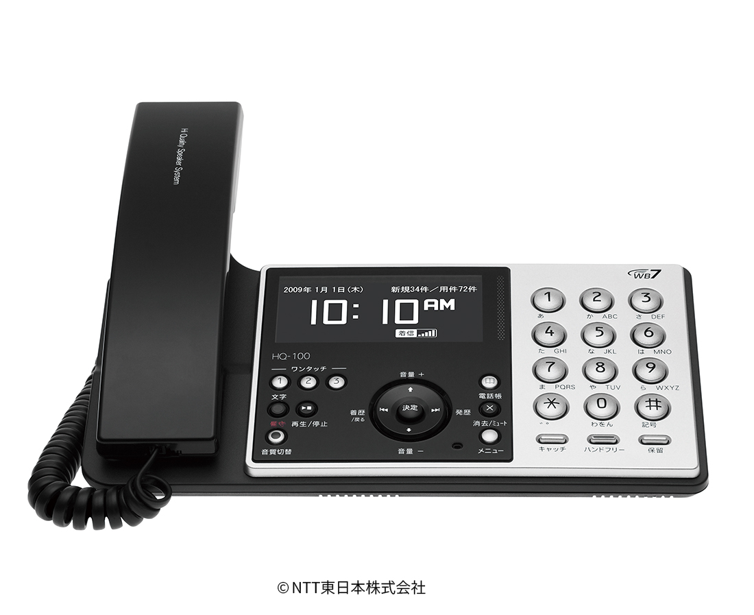 2009(平成21)年2月にNGNサービス「フレッツ 光ネクスト」において「ひかり電話」をご利用のお客さま向けに高音質電話機 ひかりクリアフォン「HQ-100」が登場。