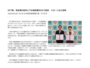 2026年2月5日 NTT東、埼玉県行田市と下水道管理のDXで協定 ドローンなど活用(電子版) -