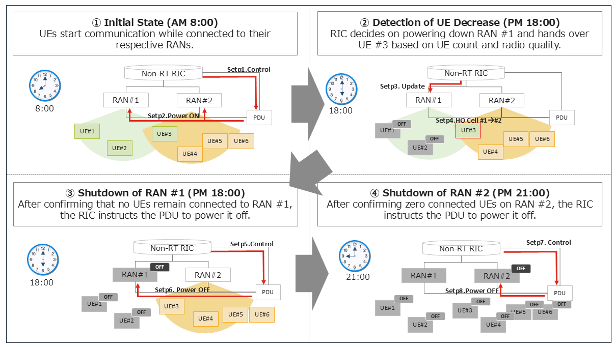 By leveraging these findings, it is expected that integration costs in multi-vendor configurations can be reduced, flexible equipment selection tailored to specific use cases will be promoted, and energy efficiency and more effective spectrum utilization will be accelerated through autonomous control of base stations(RAN)using RIC.