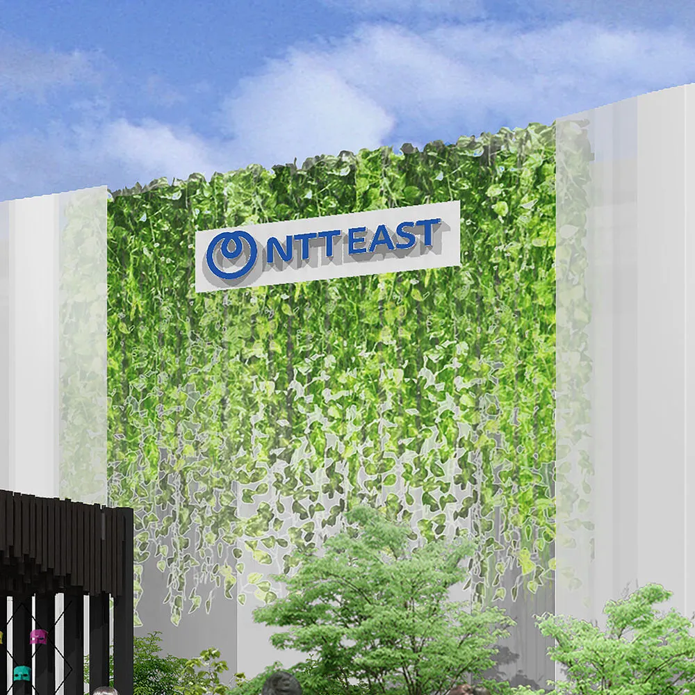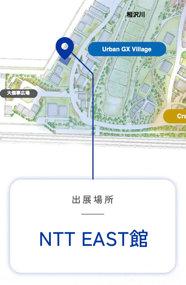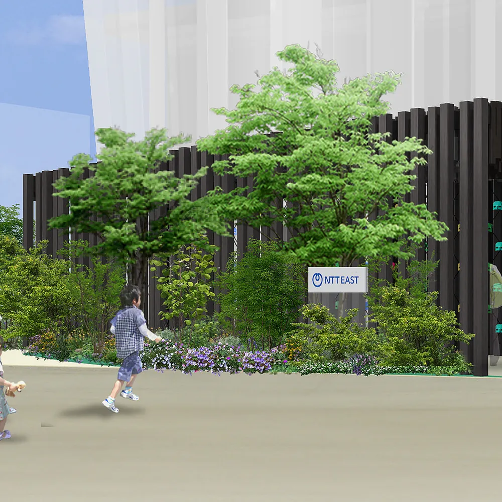 NTT EAST館では、「ウェルビーイングな社会」と「地域の未来を支える取り組み」について、次世代ネットワークIOWNなど、最先端の技術とともに「五感で楽しむ感動体験」をお届けします。ぜひ楽しみにお待ちください。