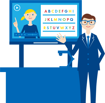 学習教材や動画などのデータを投影し、その上から電子ペンで書き込みやパソコン操作ができるようになっている。