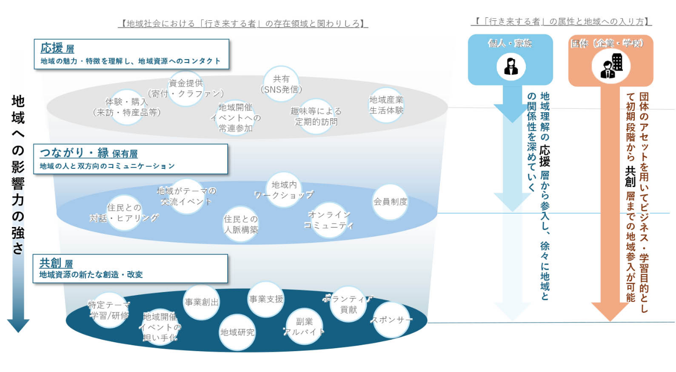 その背景には、地域社会存続の危機があります。東京一極集中が進む中、地域における人口減少が続き、ヒト・資金・ノウハウなどが圧倒的に足りていない、自治体機能、インフラが維持できないなどの課題が山積しています。一方、地域には、その土地にしかない地域の魅力、例えば、有形文化財に加えて、お祭りなどの地域に根差した無形文化財、特産品や郷土料理、豊かな農地・山・水流などの自然、歴史や風土といった明るいミライへとつながる可能性のある地域資源が数多く存在しています。
