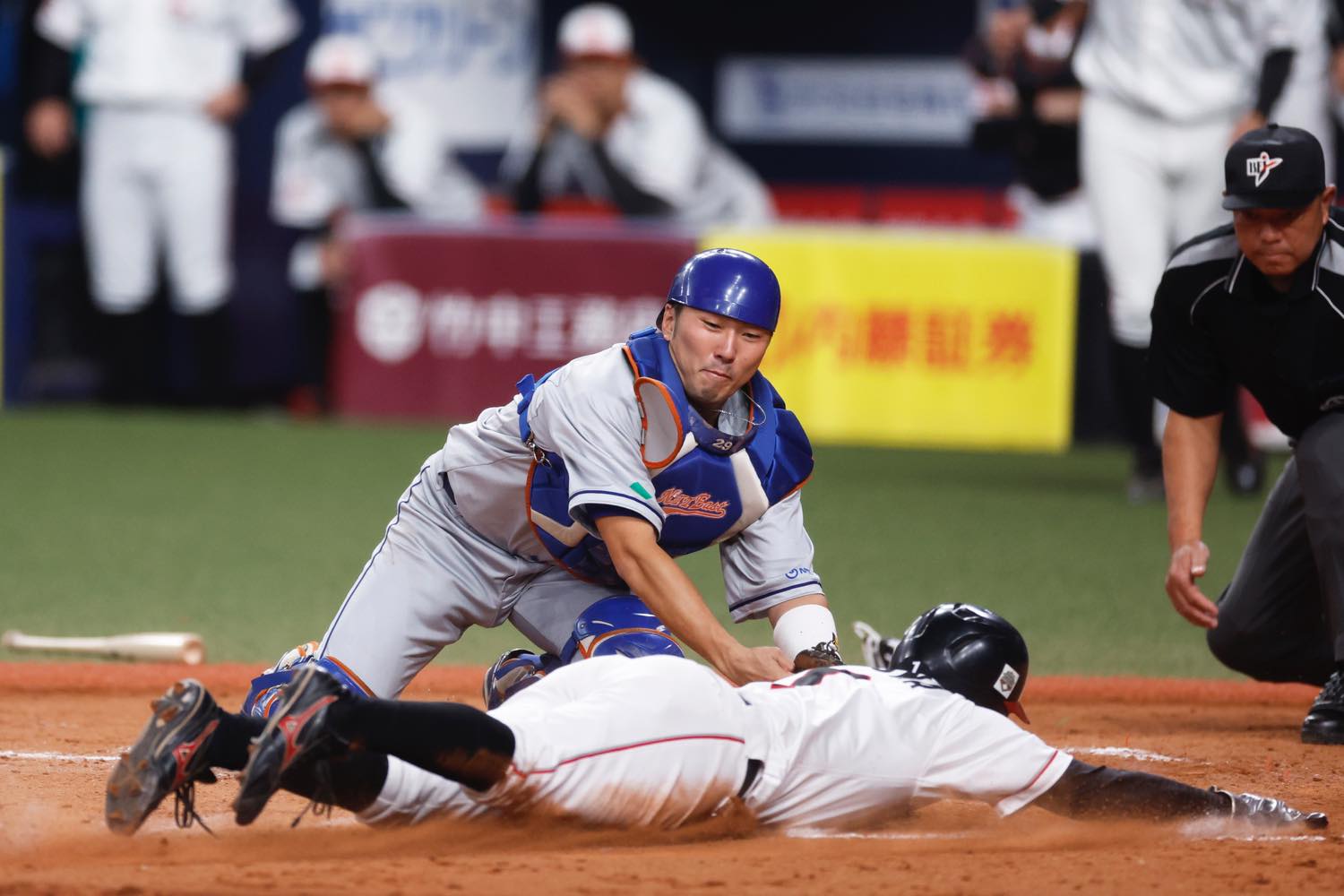 さらに道原選手の打った内野ゴロを相手守備が悪送球、その間に二塁走者が生還し1点を追加、この回一挙に4点を奪い、6-1と大きくリードを広げます。